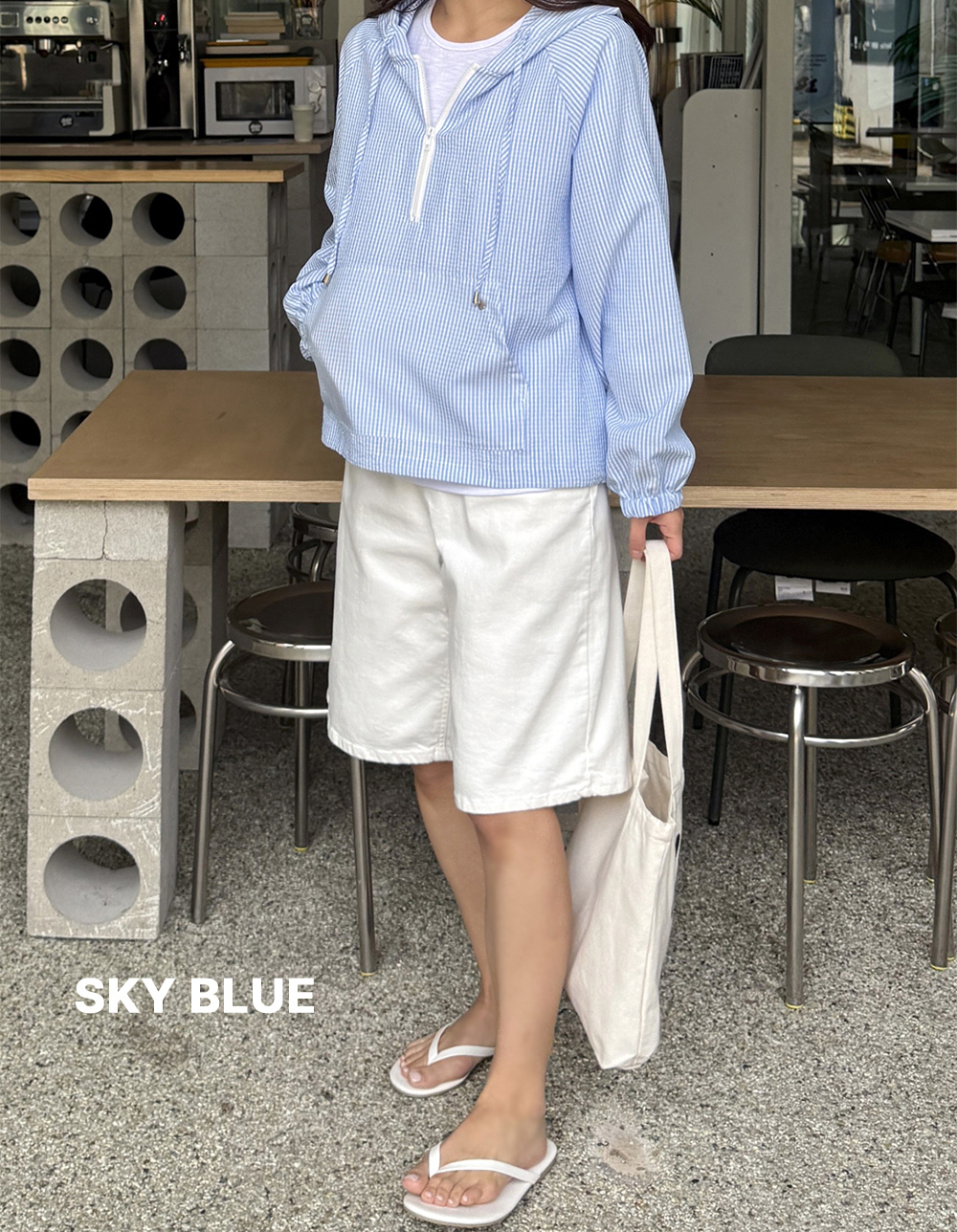 시어서커 원단으로 제작되어 몸에 달라붙지 않아 산뜻하게 착용되며 잔잔한 스트라이프 패턴이 더해져 보기만 해도 시원한 무드가 느껴지는 아이템이예요:D